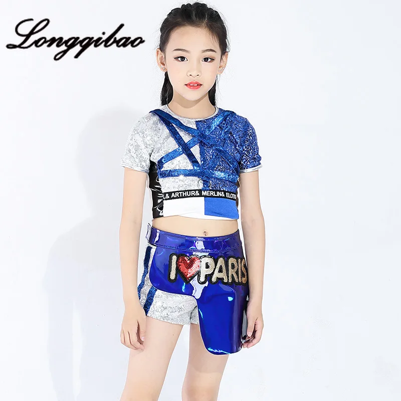 Children's Jazz Dance Set Korean Version of The Navel Girl Catwalk Costume Girl Costumes Cheerleadi